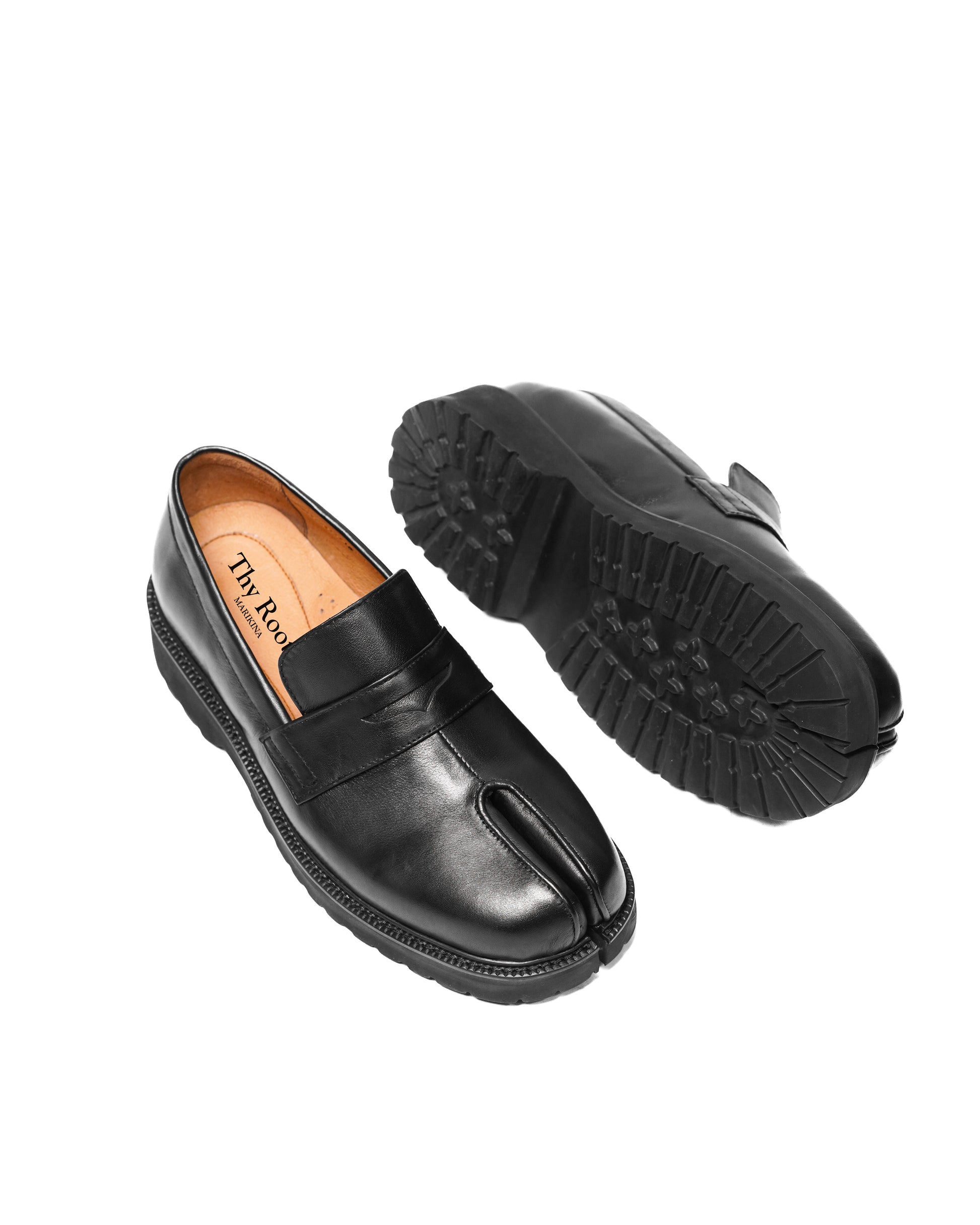Travis comes in leather material in loafers silhouette - It features the Tabi split-toe, inspired by the traditional 15th century Japanese sock.